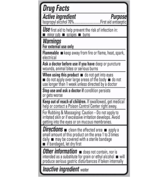 70% Isopropyl Alcohol is a first aid antiseptic that aids in the treatment of minor cuts and scrapes. This product is paraben-free, phthalate-free, and not made with a natural rubber label. Aroma Isopropyl Alcohol is a topical antimicrobial and is made for external use only.