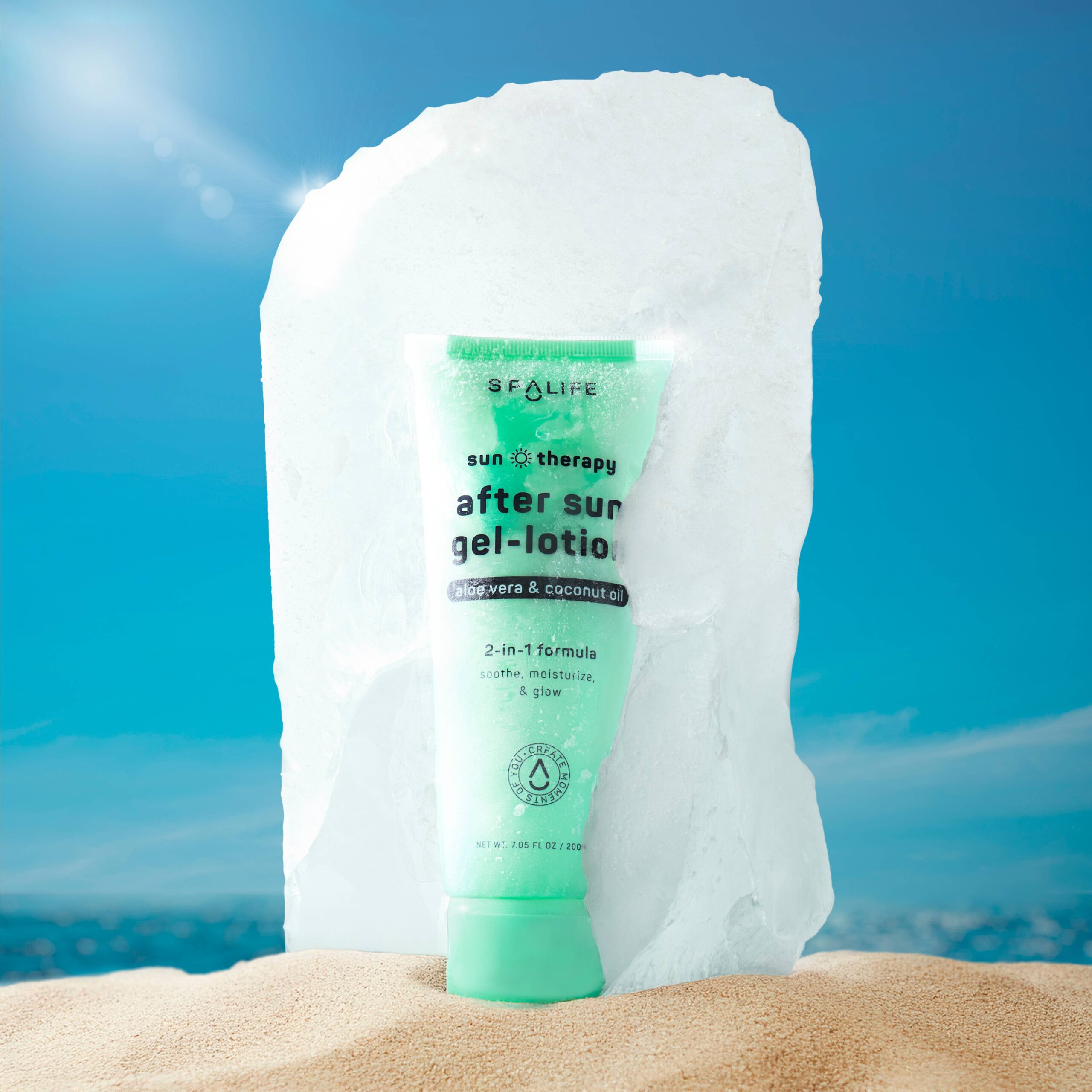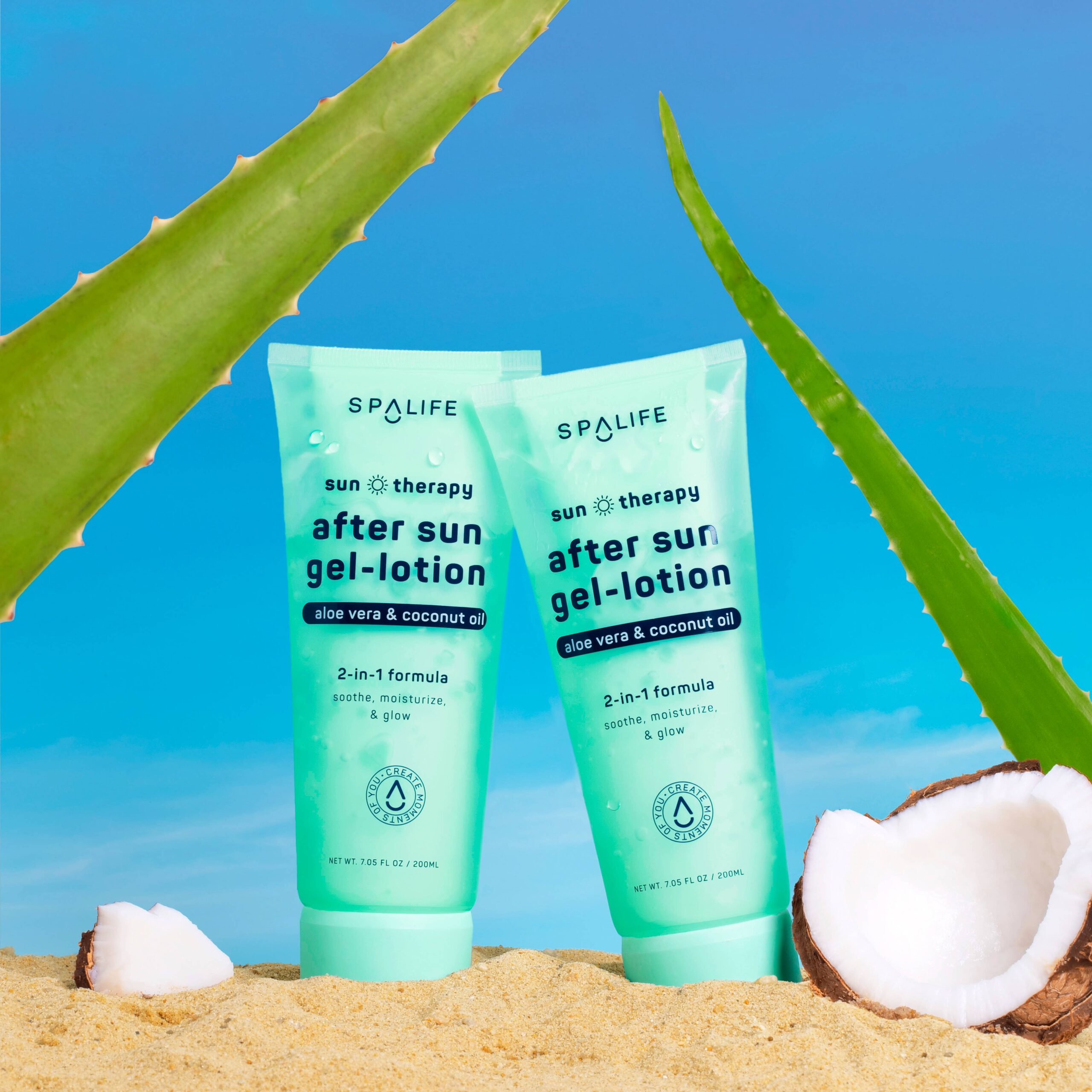 Soothe, hydrate, and refresh your skin after a day in the sun with SpaLife’s 2-in-1 after-sun gel-lotion. Infused with aloe vera, coconut oil, and macadamia oil, this unique dual-chamber formula combines a lightweight moisturizer and cooling after-sun gel to deliver instant relief to sun-damaged skin.