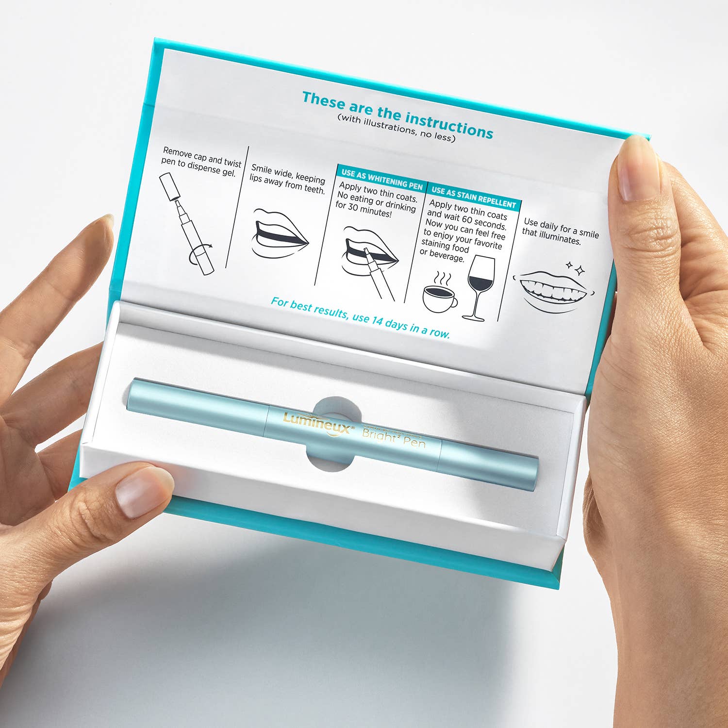 This is, and we can’t stress this enough, our biggest contribution to teeth whitening. This pen does 2 things very well; it helps protect your teeth against stains AND it whitens them.1,2,3 Brush on before you drink coffee, tea, or red wine to help protect against staining,1 leave it on for 30 minutes for whiter teeth, without the sensitivity.