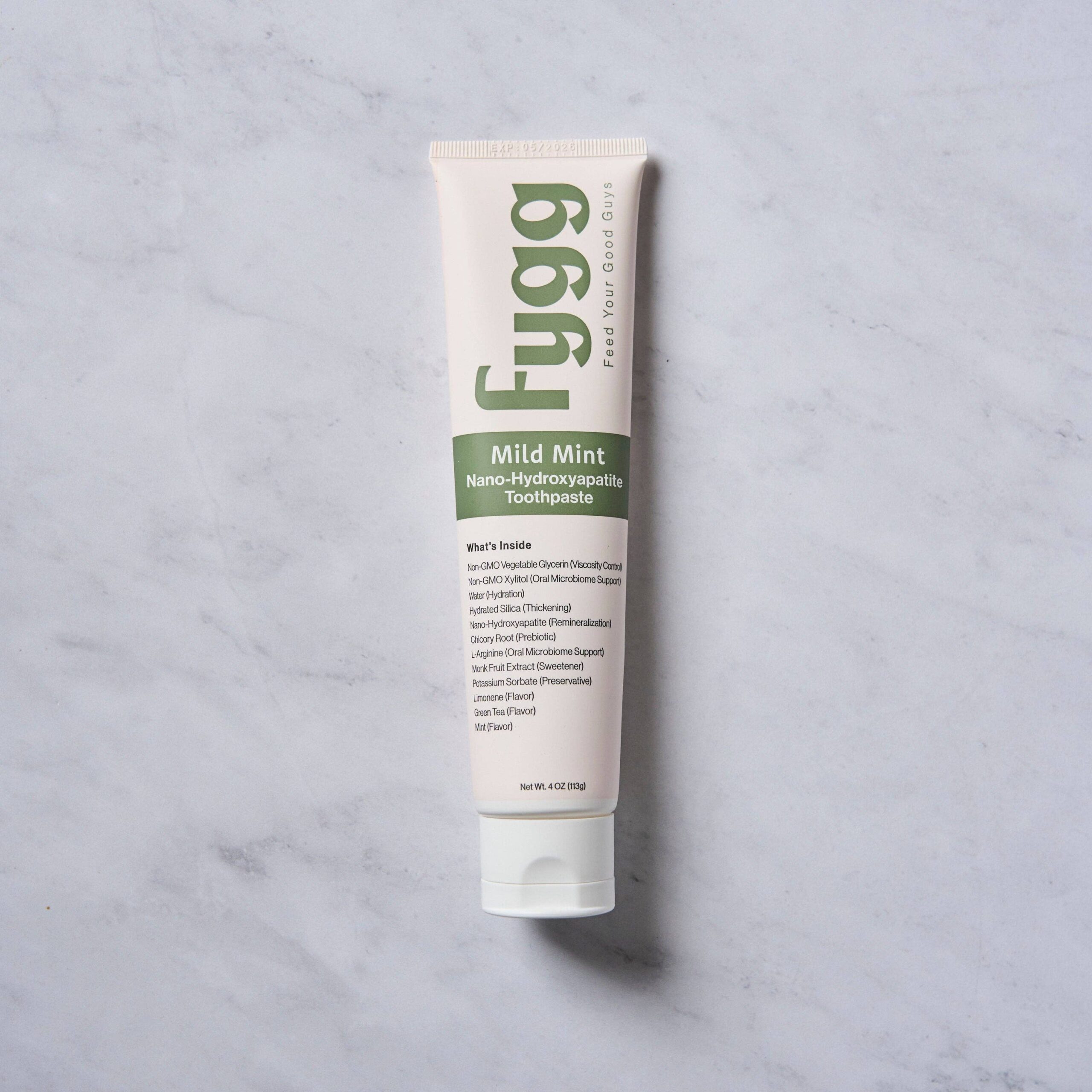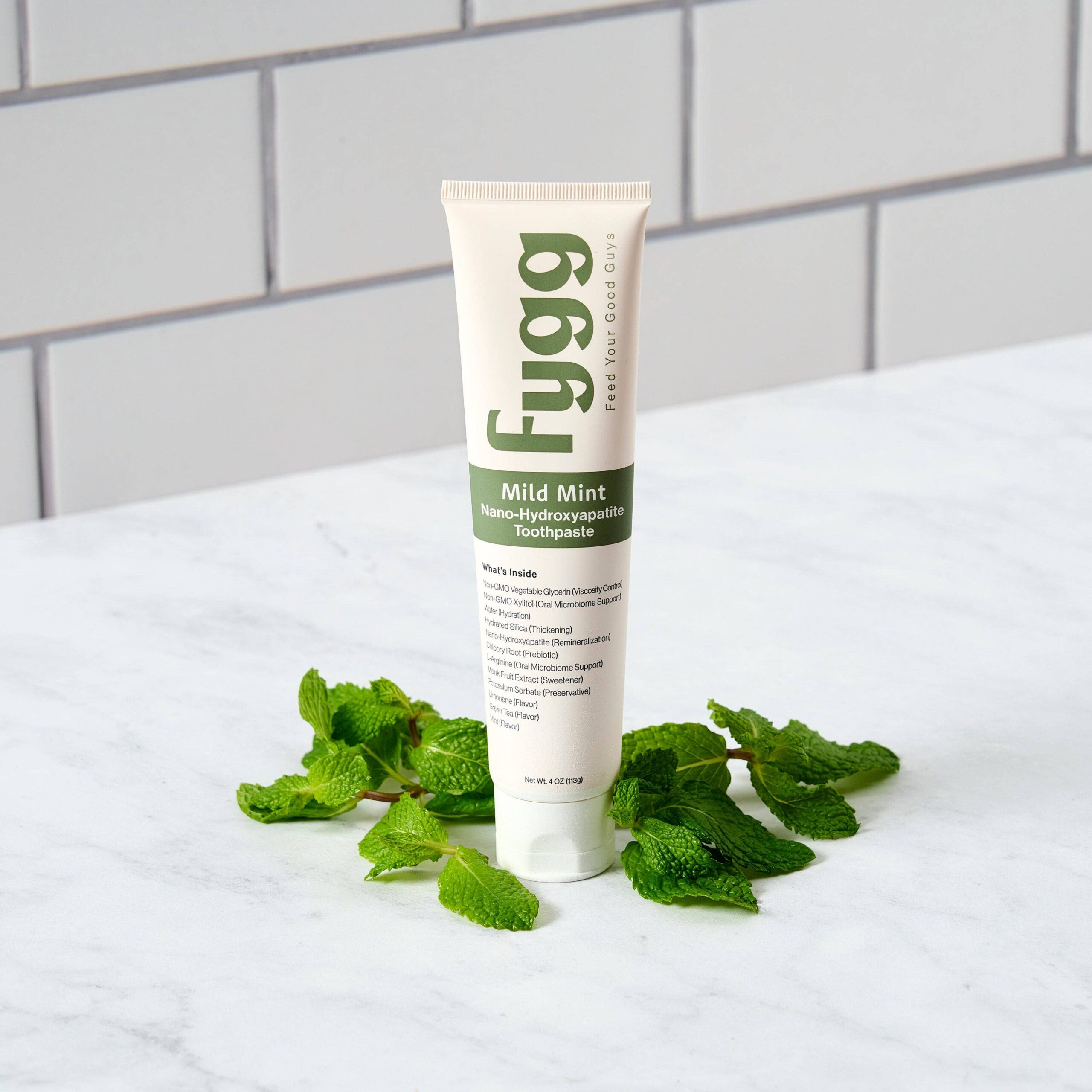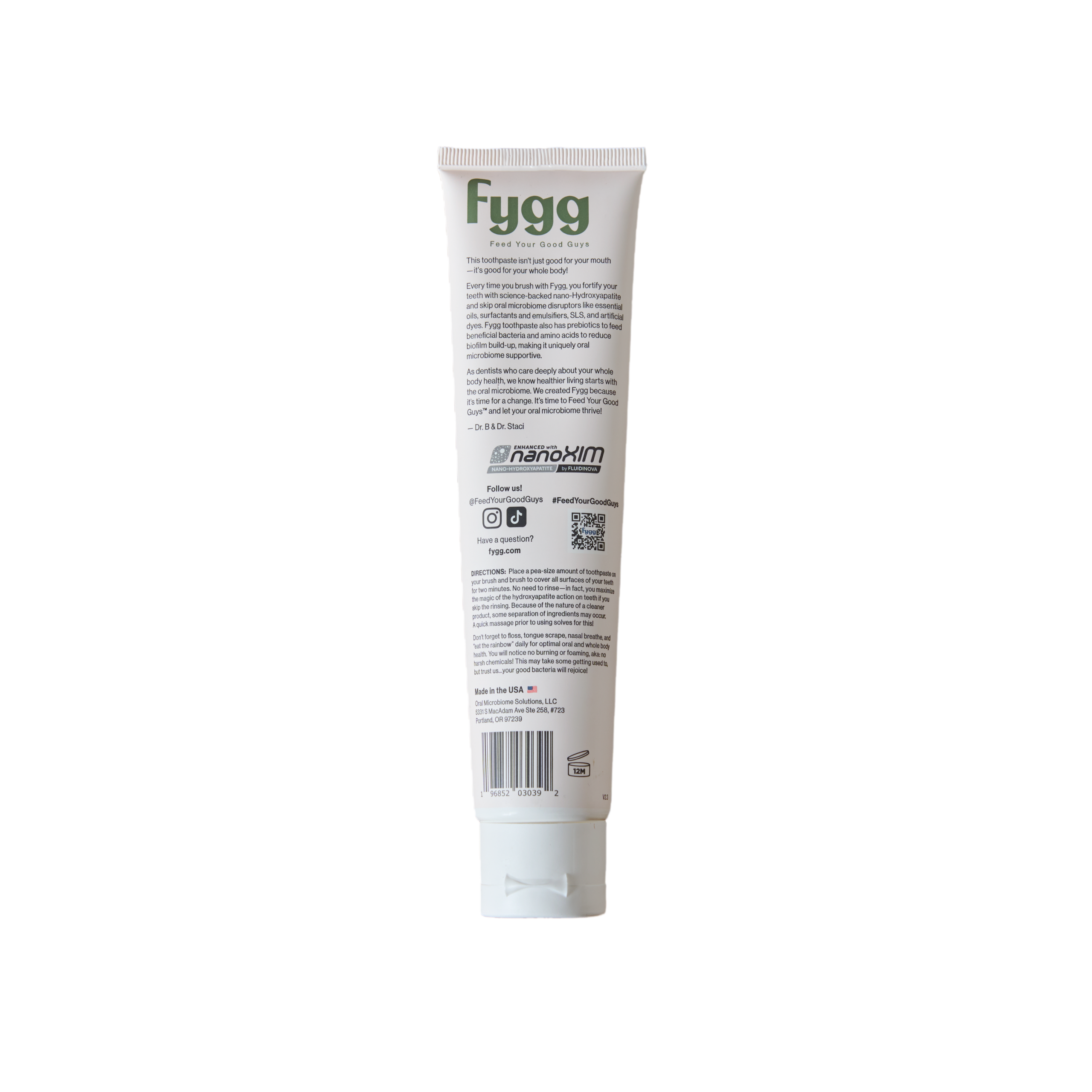 Fygg’s fluoride-free prebiotic toothpaste is formulated with oral microbiome nourishing ingredients, including L-arginine, xylitol, chicory root and nano-hydroxyapatite.